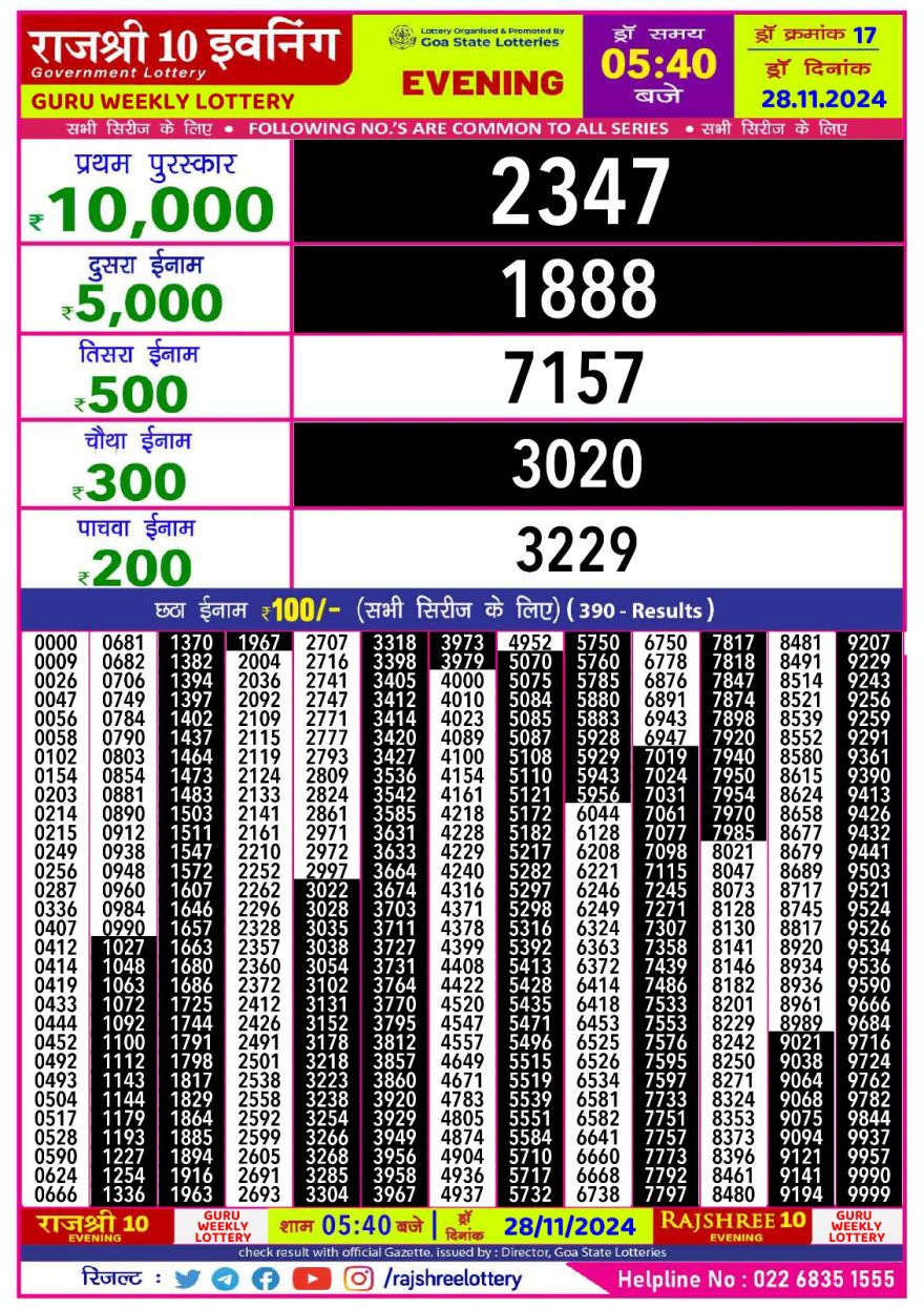 Rajshree 10 evening wednesday  5:40pm result 28.11.24