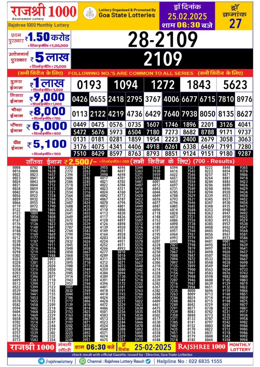Nagaland State Lotteries was established in the year 1972 under the supervision of the Finance Department to generate a dependable source of revenue for the State Government. Nagaland State Lottery is held every day of the week at three different times of the day, Morning, Day, and Evening. Every day, the lottery is held under a different name with some difference in the prize money with the top prize worth ₹1 Crore (including Super Prize amount). The daily lotteries hosted by Nagaland State include Dear Morning Lottery, Dear Day Lottery, and Dear Evening Lottery which costs 6 Rupees for each ticket.