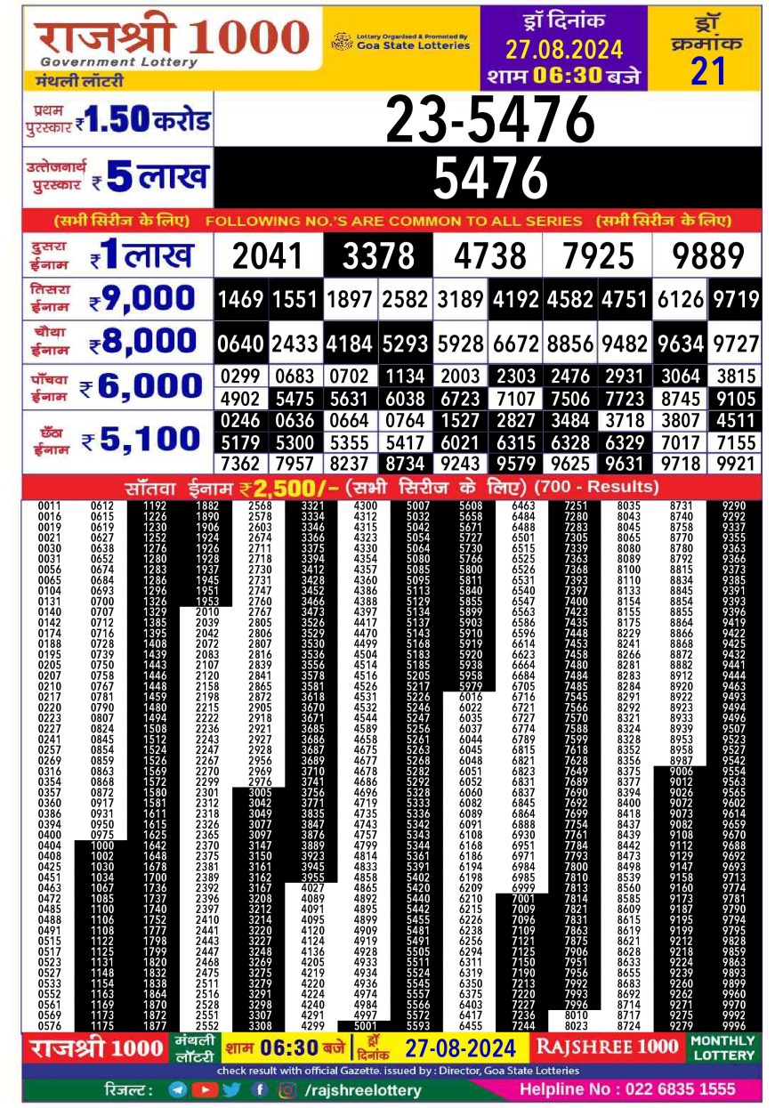 Nagaland State Lotteries was established in the year 1972 under the supervision of the Finance Department to generate a dependable source of revenue for the State Government. Nagaland State Lottery is held every day of the week at three different times of the day, Morning, Day, and Evening. Every day, the lottery is held under a different name with some difference in the prize money with the top prize worth ₹1 Crore (including Super Prize amount). The daily lotteries hosted by Nagaland State include Dear Morning Lottery, Dear Day Lottery, and Dear Evening Lottery which costs 6 Rupees for each ticket.