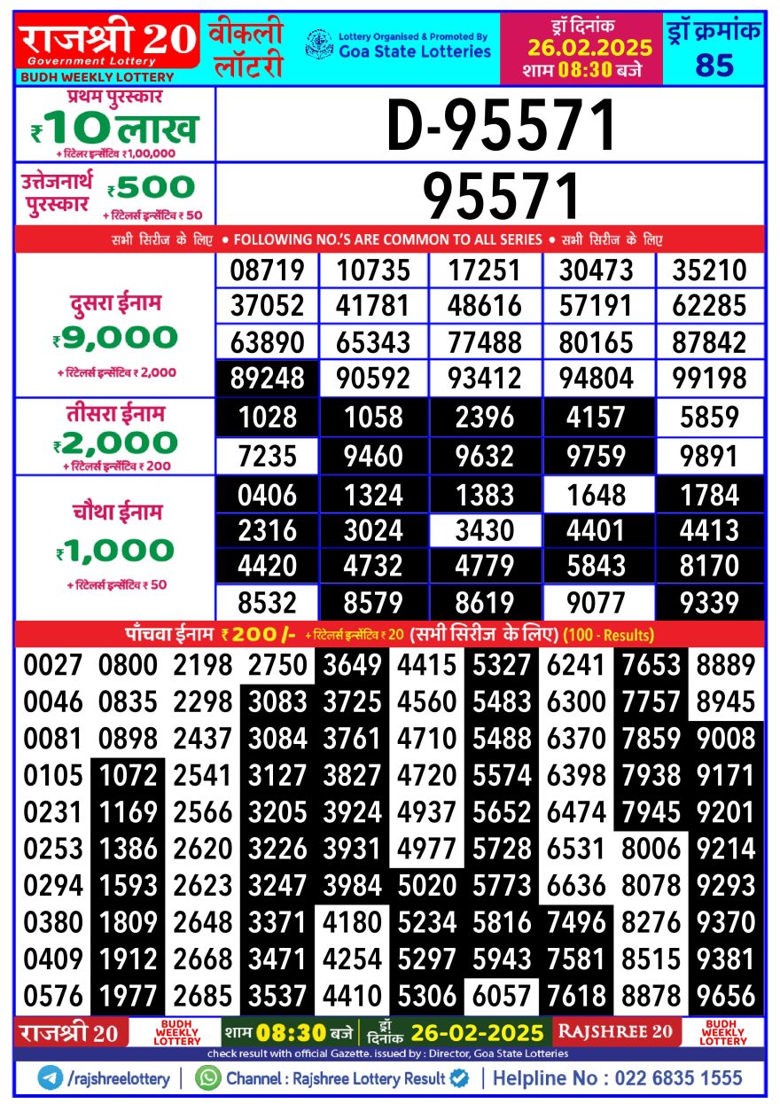 Rajshree 20 Lottery 8:30PM Result 26.2.25