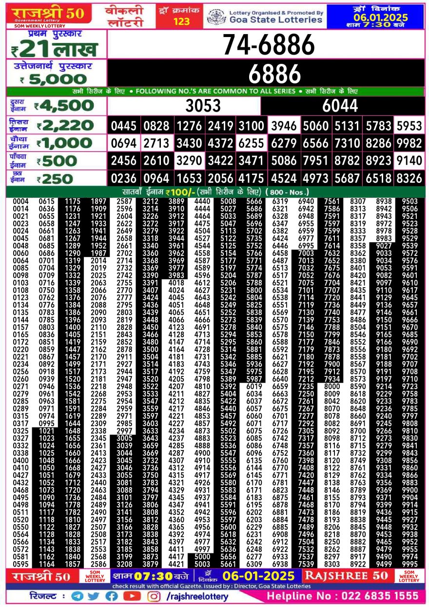 Rajshree 20 Lottery 8:30PM Result 6.1.25