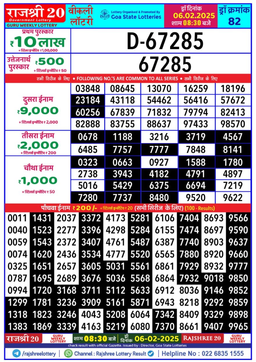 Rajshree 20 Lottery 8:30PM Result 6.2.25