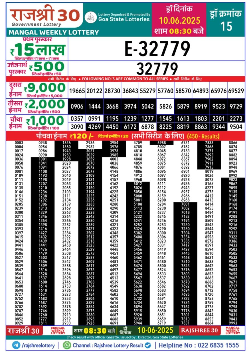 Rajshree 30 Lottery 8:30PM Result 10.06.2025