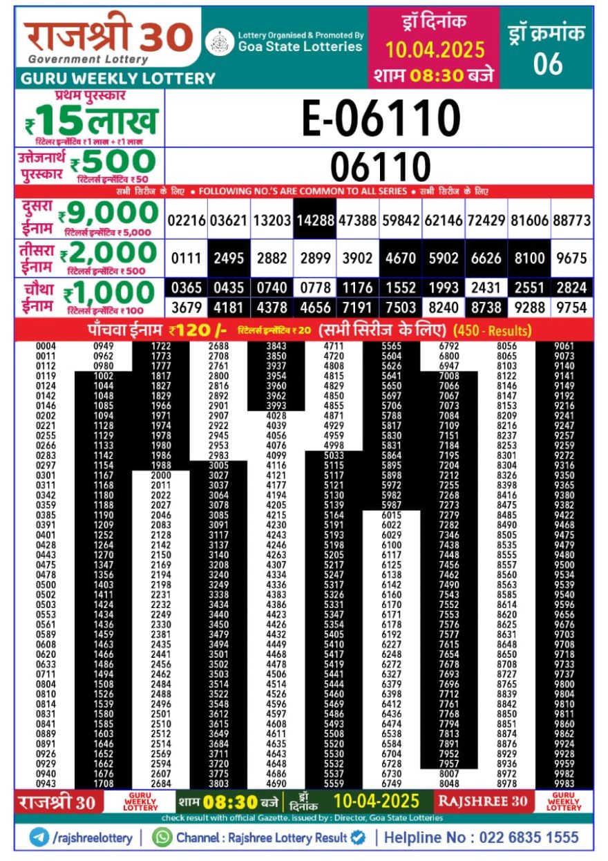 Rajshree 30 Lottery 8:30PM Result 10.4.25