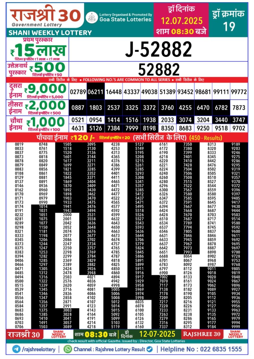 Rajshree 30 Lottery 8:30PM Result 12.07.2025