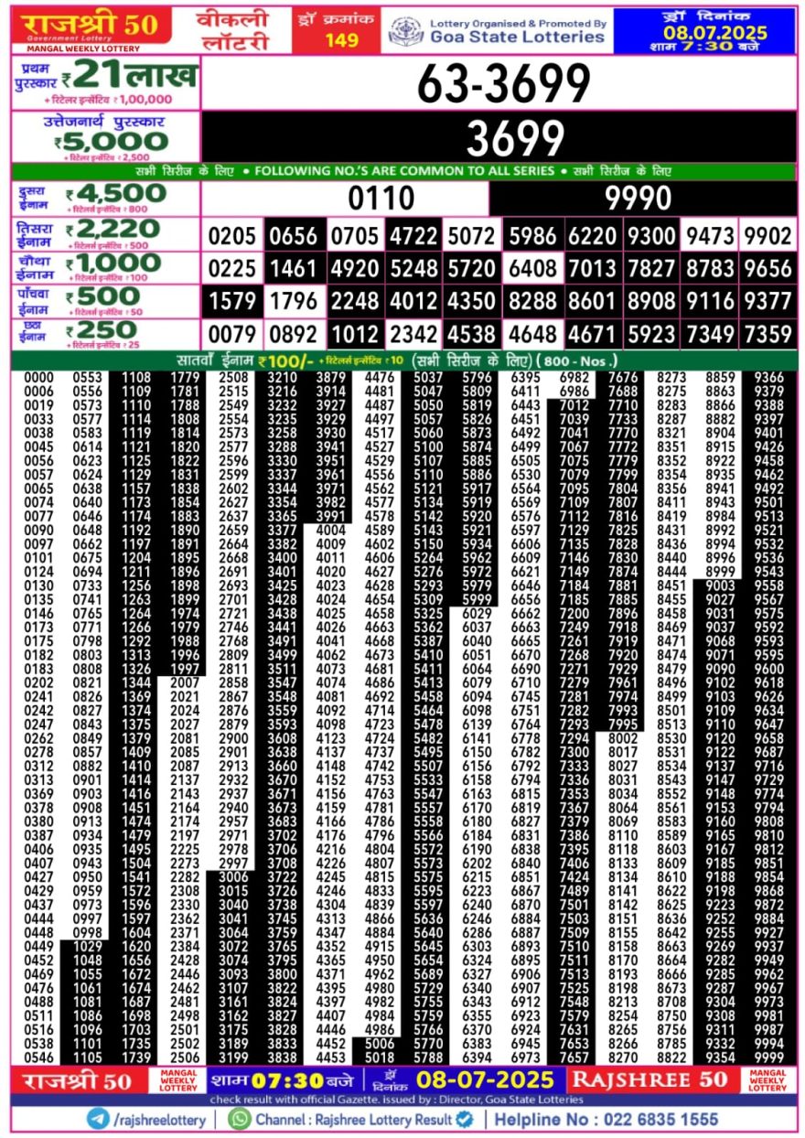 Rajshree 50 Lottery 7:30PM Result 08.07.2025