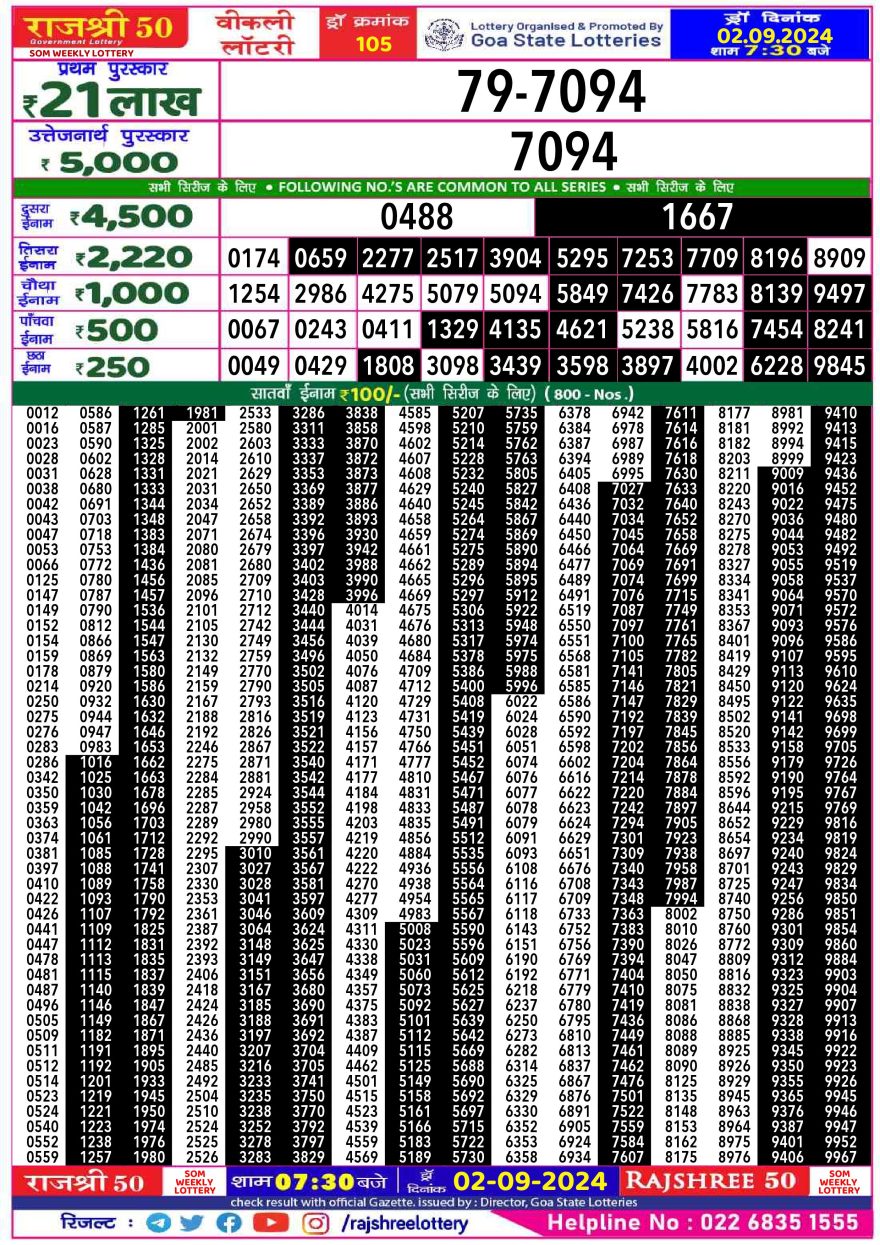 Rajshree 50  Lottery 7:30PM Result 2.09.24