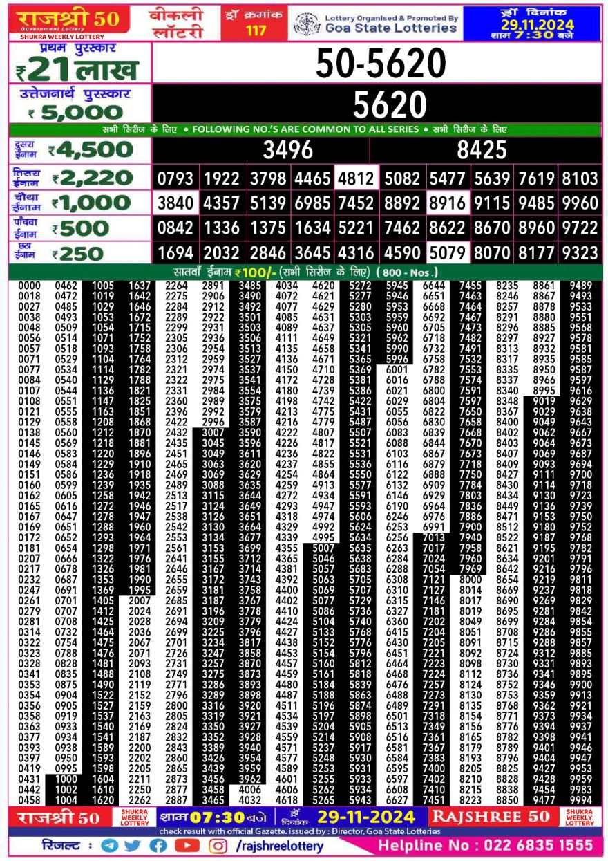 Rajshree 50 Lottery 7:30PM Result 29.11.24
