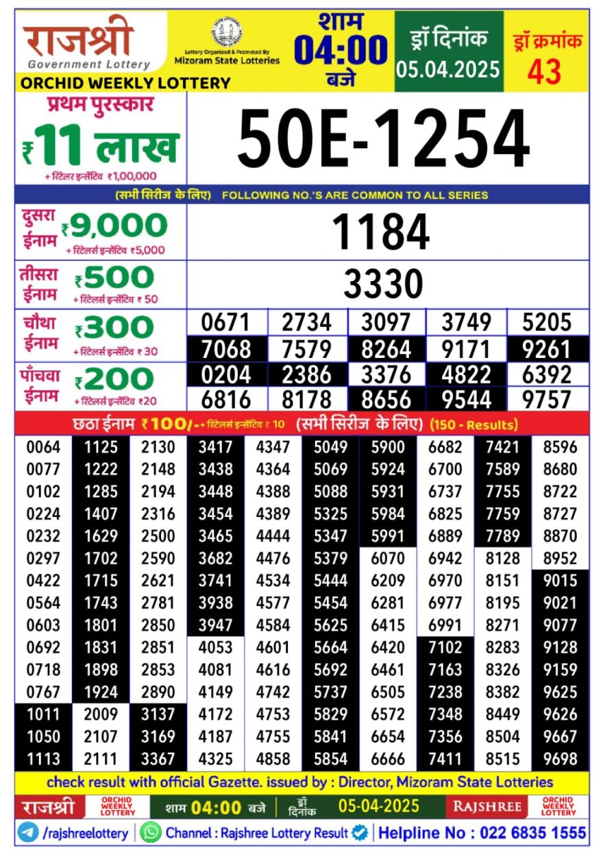 Rajshree orchid Saturday Weekly Lottery 4PM Result 5.4.25