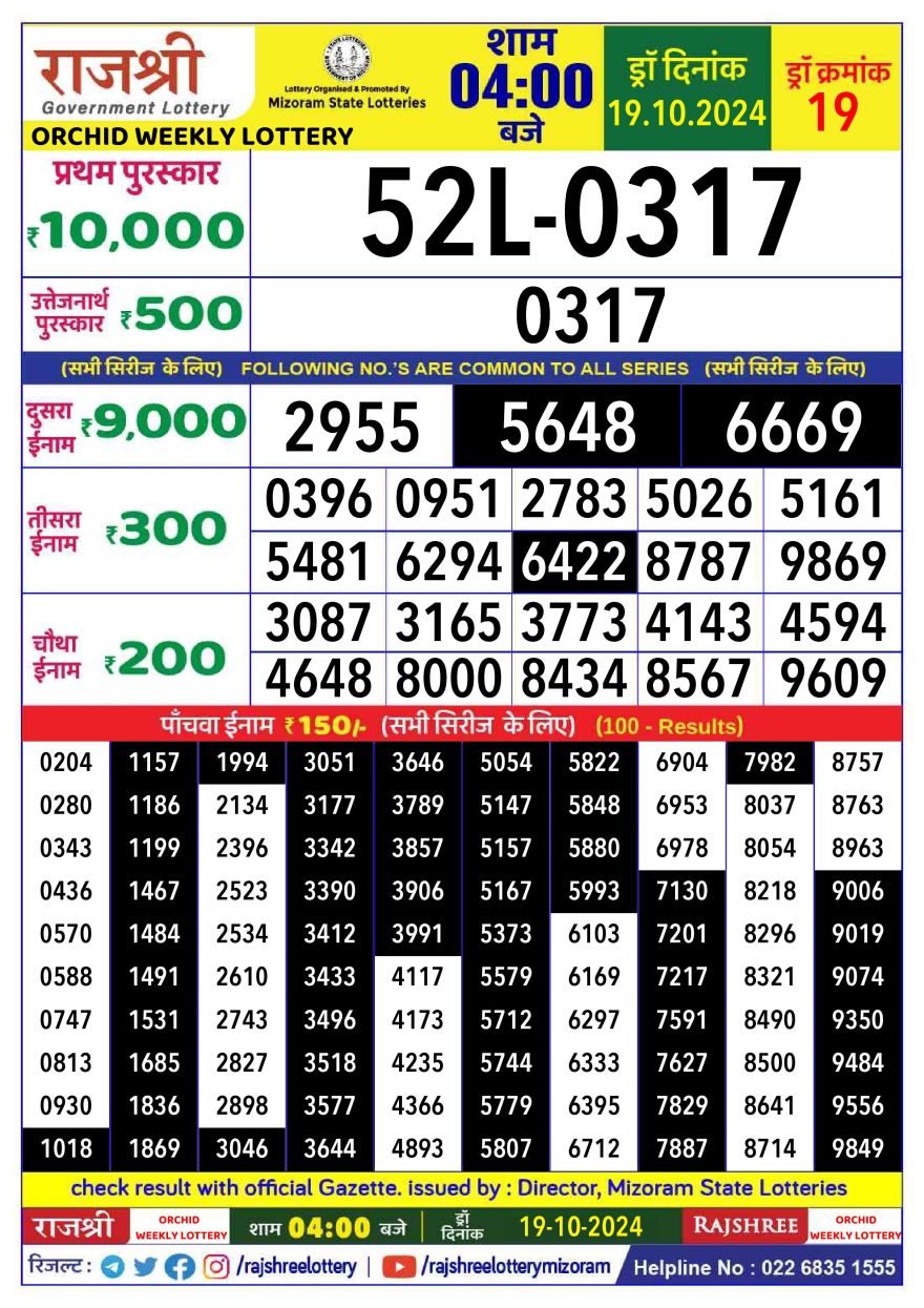 Rajshree orchid Weekly Lottery 4PM Result 19.10.24