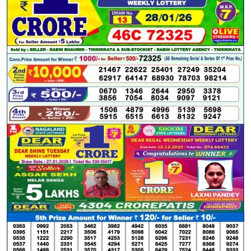 Nagaland State Lotteries was established in the year 1972 under the supervision of the Finance Department to generate a dependable source of revenue for the State Government. Nagaland State Lottery is held every day of the week at three different times of the day, Morning, Day, and Evening. Every day, the lottery is held under a different name with some difference in the prize money with the top prize worth ₹1 Crore (including Super Prize amount). The daily lotteries hosted by Nagaland State include Dear Morning Lottery, Dear Day Lottery, and Dear Evening Lottery which costs 6 Rupees for each ticket.