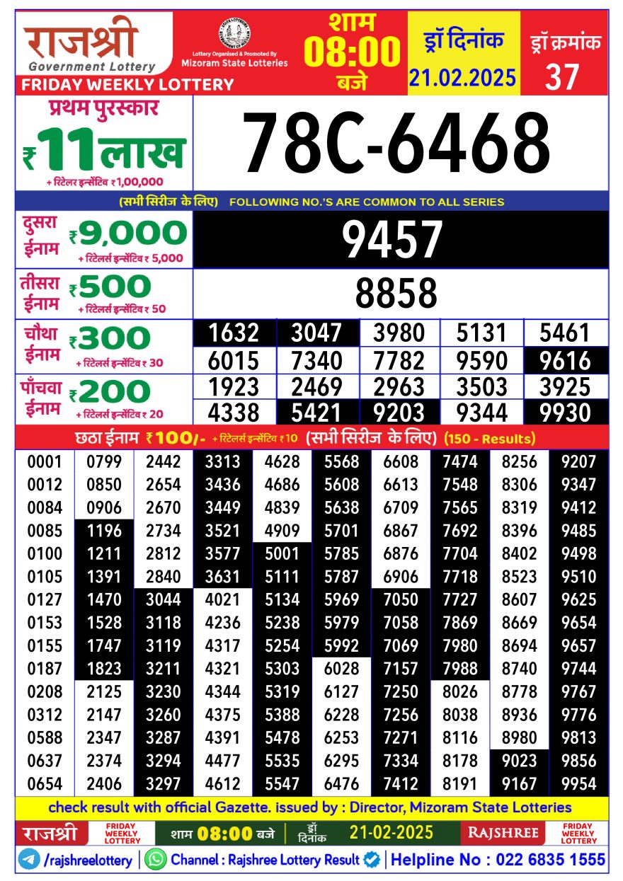 Rajshree Weekly Lottery 8PM Result 21.2.2025