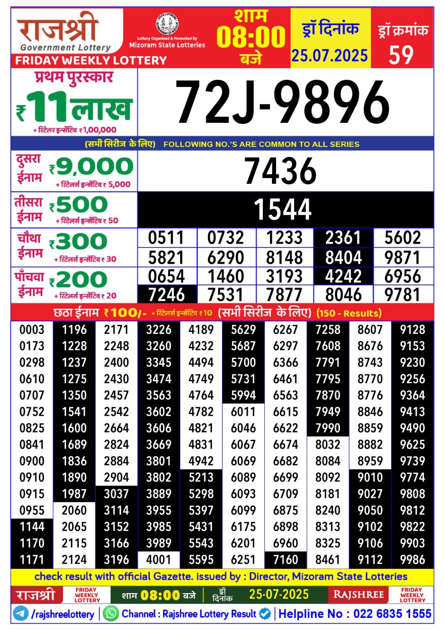 Rajshree Weekly Lottery 8PM Result 25.07.2025