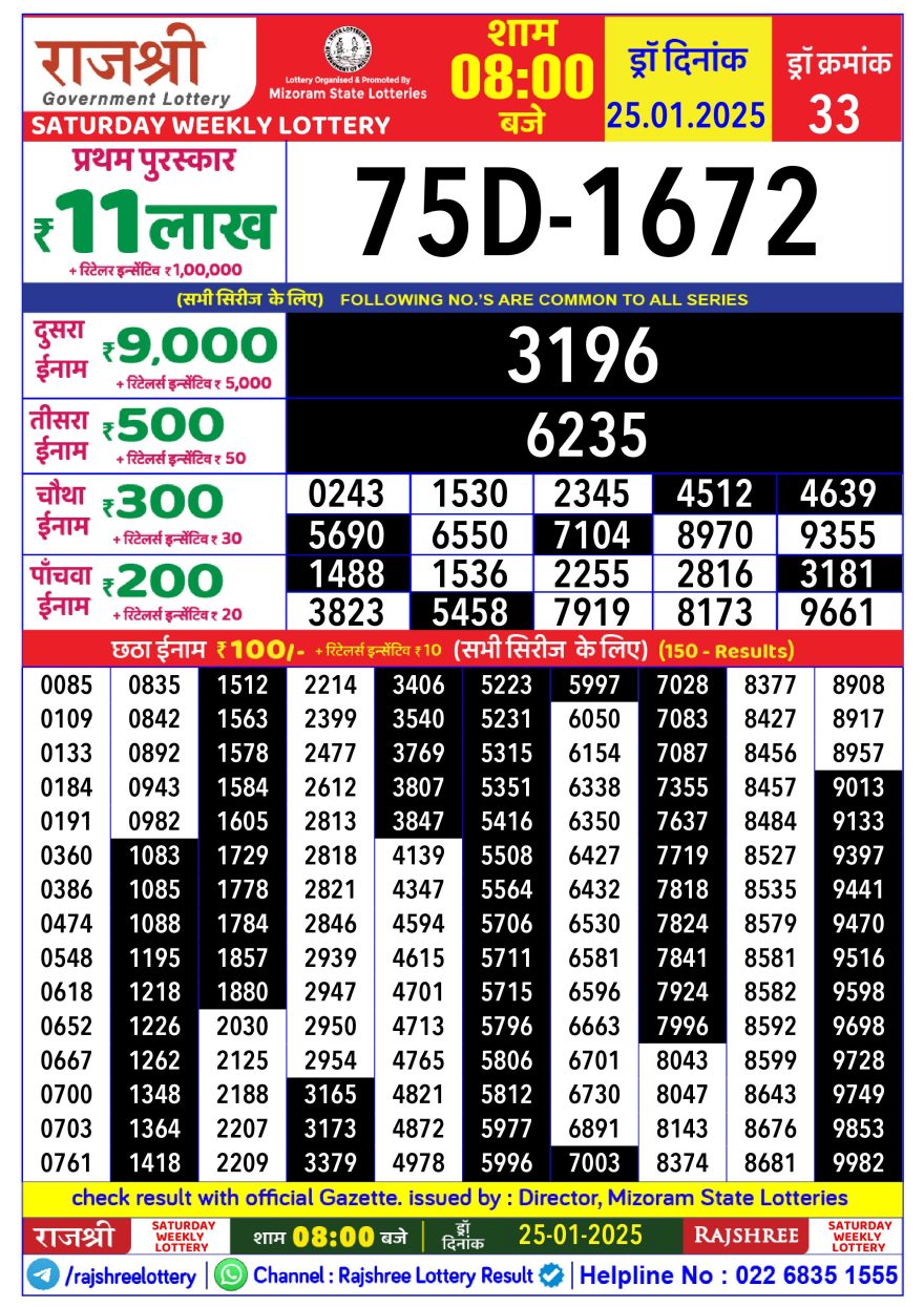 Rajshree Weekly Lottery 8PM Result 25.1.25