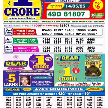 Nagaland State Lotteries was established in the year 1972 under the supervision of the Finance Department to generate a dependable source of revenue for the State Government. Nagaland State Lottery is held every day of the week at three different times of the day, Morning, Day, and Evening. Every day, the lottery is held under a different name with some difference in the prize money with the top prize worth ₹1 Crore (including Super Prize amount). The daily lotteries hosted by Nagaland State include Dear Morning Lottery, Dear Day Lottery, and Dear Evening Lottery which costs 6 Rupees for each ticket.