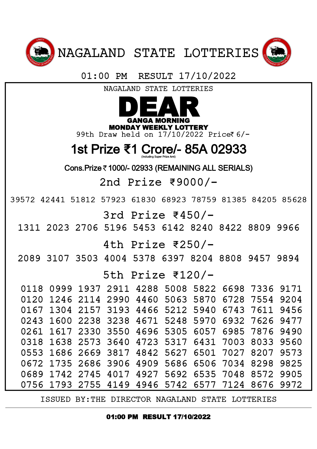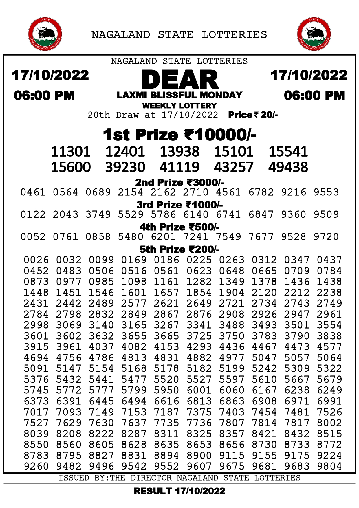 Dear Puja Bumper Lottery Result 11.10.2025 8PM