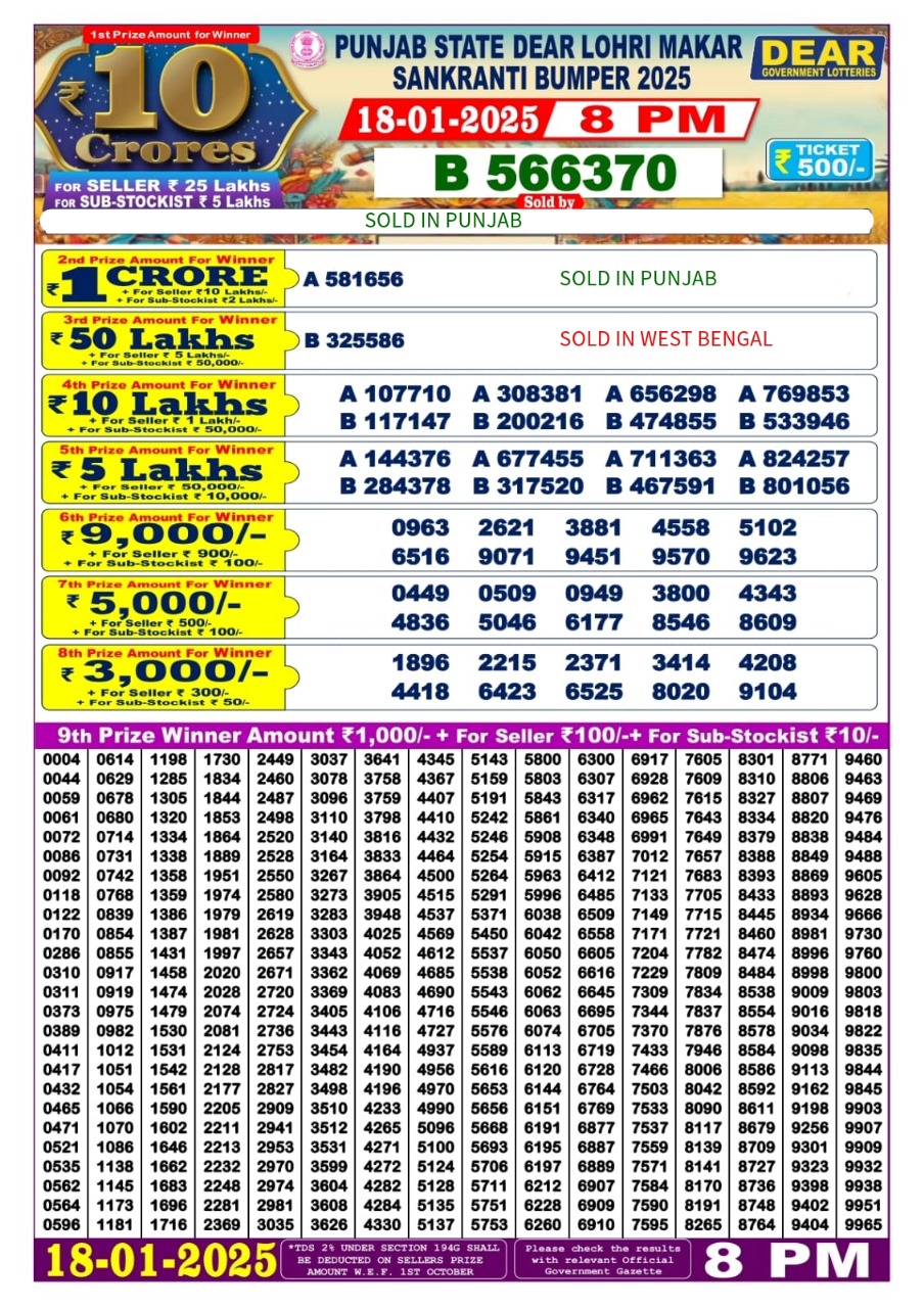 Punjab State Dear Lohri Makar Sankranti Bumper Result 2025