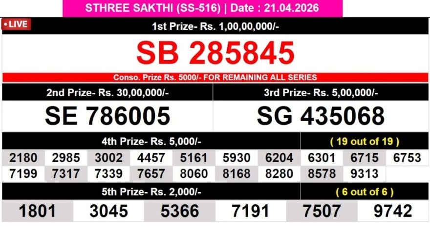 Today Lottery Result Kerala SS-516 Sthree Sathi 21.04.2026